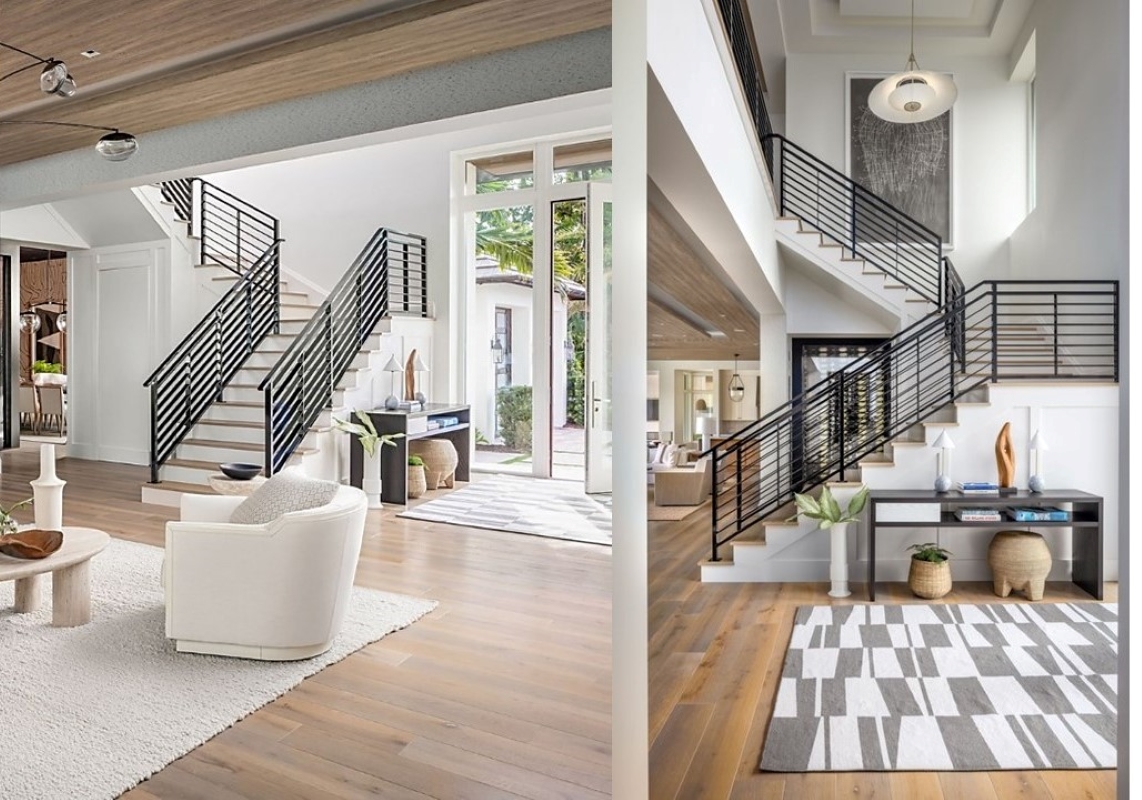 Based in Iowa and designing houses around the country, Rebecca Cartwright is no stranger to customizing spaces according to her clients’ needs. The principal of R Cartwright Design, Rebecca prioritizes learning her clients’ needs and creating stylish solutions. While designing a Naples, Florida vacation home for a client, she and the client were looking for a way to amp up the entry way. “After originally completing the entry in this Naples, FL home, we talked with the homeowners about upping the ‘wow factor,'” says Cartwright. “One way was to create a more graphic rug here.” Enter Perennials!